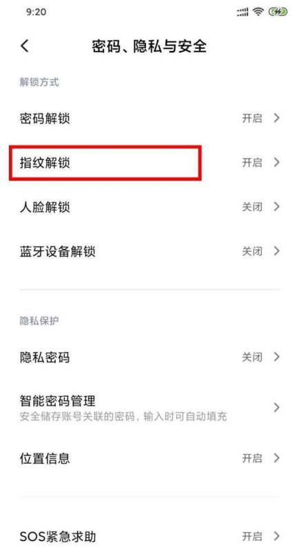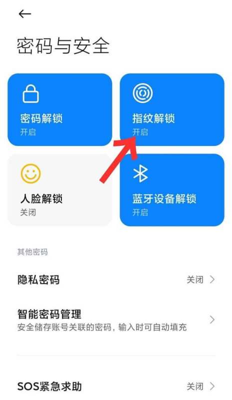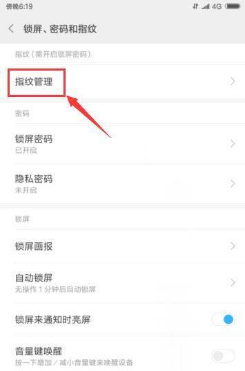 進(jìn)入“鎖屏、密碼和指紋”界面后,點(diǎn)擊“指紋管理”選項(xiàng),這里可以對(duì)已錄入的指紋進(jìn)行管理,也能添加新的指紋。