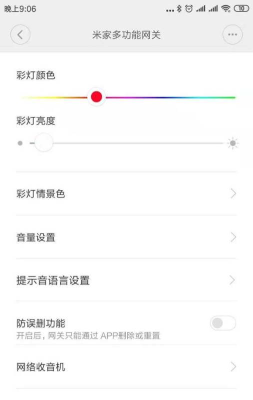 在該頁(yè)面中可進(jìn)行彩燈顏色的設(shè)置,滑動(dòng)彩燈顏色選擇器,可看到多功能網(wǎng)關(guān)顏色隨之變化。