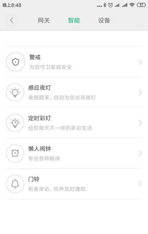 小米多功能網(wǎng)關(guān)能夠簡(jiǎn)單編程,與小米人體傳感器進(jìn)行互動(dòng)。在智能子頁(yè)面下點(diǎn)擊添加智能。