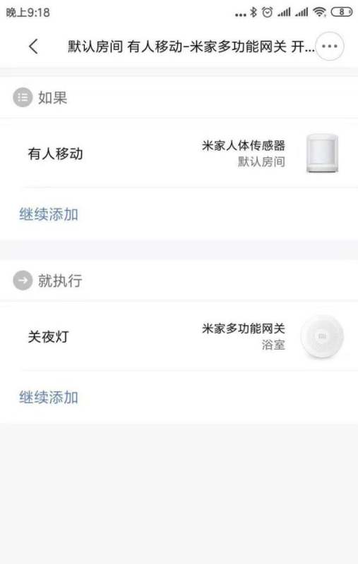 當(dāng)小米傳感器中顯示有人移動(dòng)時(shí),小米多功能網(wǎng)關(guān)的夜燈會(huì)自動(dòng)關(guān)閉。