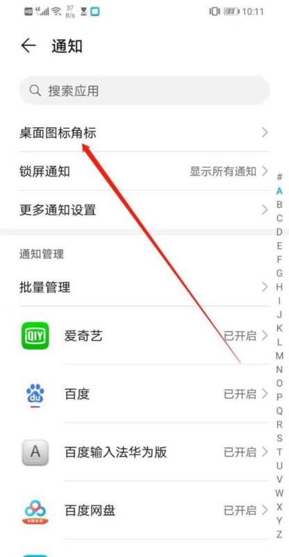 進(jìn)入桌面圖標(biāo)角標(biāo)設(shè)置在通知管理頁(yè)面中找到“桌面圖標(biāo)角標(biāo)”或類似選項(xiàng)(部分機(jī)型可能顯示為“圖標(biāo)角標(biāo)”),點(diǎn)擊進(jìn)入。