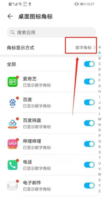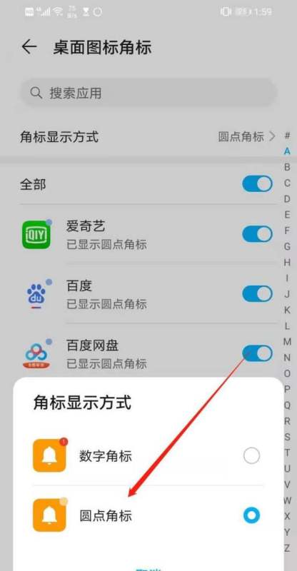 確認(rèn)當(dāng)前角標(biāo)顯示方式若需先切換角標(biāo)樣式(如從數(shù)字切換為圓點(diǎn)),可在該頁(yè)面選擇“圓點(diǎn)角標(biāo)”選項(xiàng)(此步驟僅當(dāng)需調(diào)整樣式時(shí)操作)。