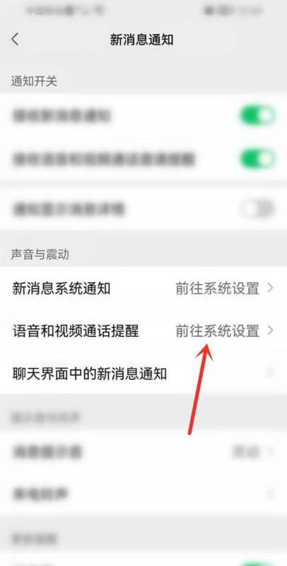 選擇“語音和視頻通話提醒”在新消息通知頁面中,向下滑動找到“語音和視頻通話提醒”選項,點擊進入通話提醒的專項設置。