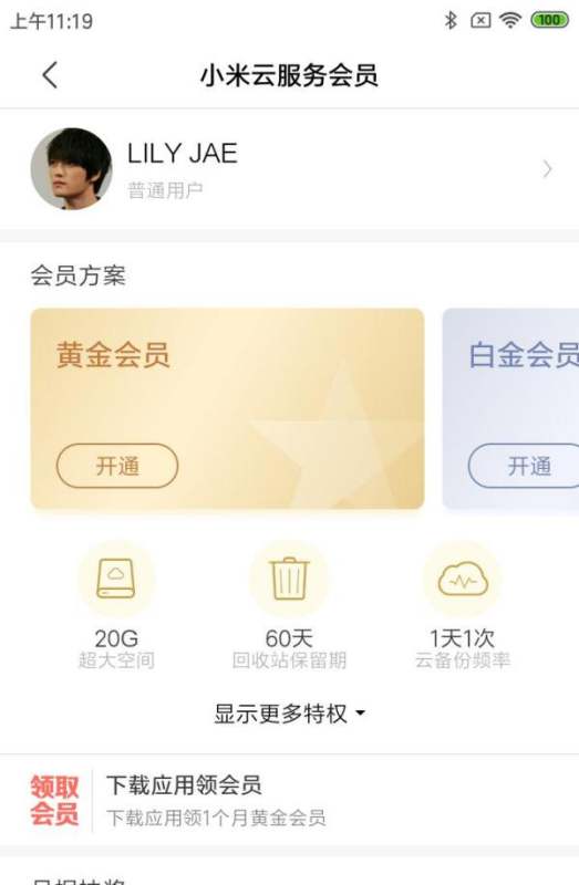 頁面跳轉后,選擇一種會員服務(如黃金會員、白金會員等),完成支付后云空間容量將自動擴大。