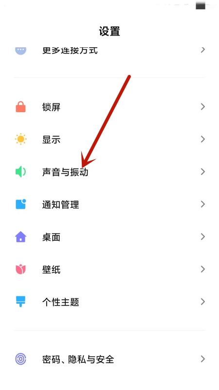 第二步:往下滑動,點擊【聲音與振動】