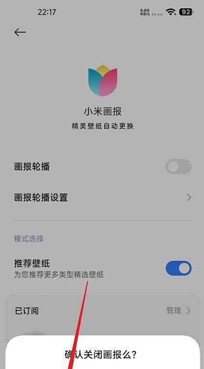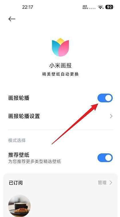 在小米畫報界面中,找到【畫報輪播】右側的開關按鈕,點擊關閉該按鈕(按鈕顯示為灰色或未選中狀態即表示關閉)。