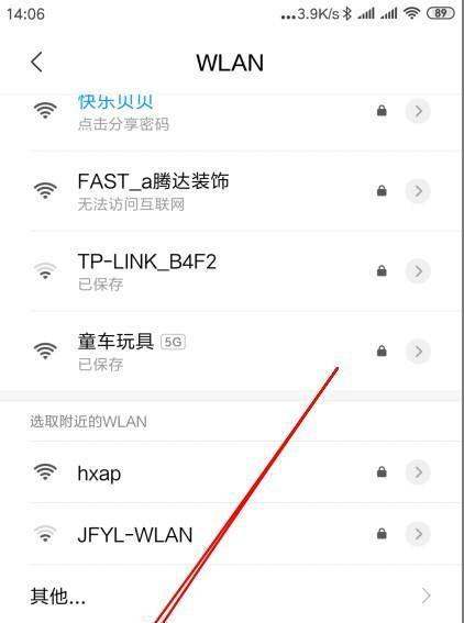 選擇WLAN設置在設置頁面中,點擊WLAN菜單,進入無線網絡管理界面。