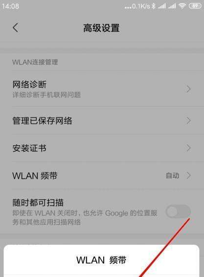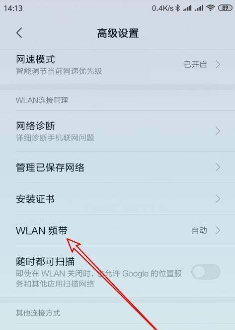 調整WLAN頻帶返回WLAN設置,點擊WLAN頻帶菜單,選擇僅使用2.4GHz頻帶。2.4GHz頻帶穿透力強、覆蓋范圍廣,適合遠距離或障礙物多的環境,可提升信號穩定性。
