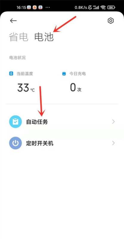 進入電池界面,點擊自動任務:在電池管理界面中,找到“自動任務”選項,點擊進入自動任務設置界面。