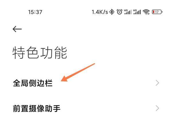 進入特色功能設置打開小米手機的設置應用,在設置頁面中找到并點擊特色功能選項。此步驟是進入側(cè)邊欄相關功能配置的入口。