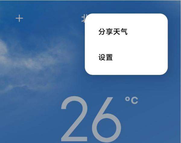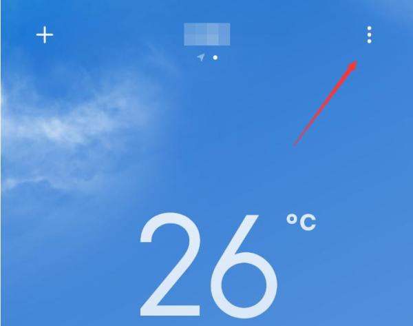 進入主菜單打開天氣APP后,點擊界面右上角的三個小圓點圖標,展開主菜單。