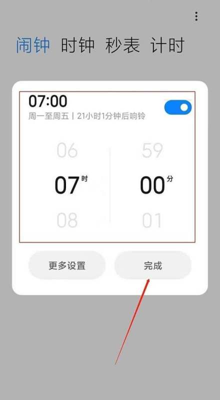 完成時(shí)間及其他參數(shù)調(diào)整后,點(diǎn)擊界面右上角的【確定】按鈕(部分版本顯示為“保存”或?qū)磮D標(biāo))。系統(tǒng)會(huì)自動(dòng)保存設(shè)置,并在指定時(shí)間觸發(fā)鬧鐘。