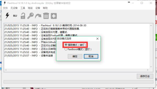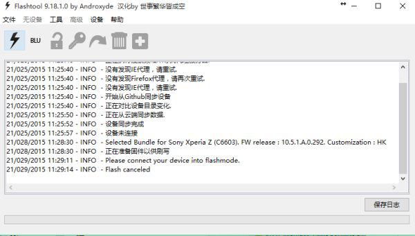 4. 打開flashtool,點擊左上角的 閃電 標志 — 強刷模式(綠燈);