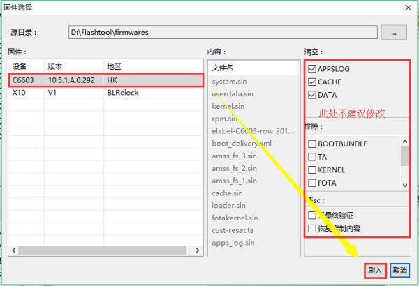5. 選擇剛剛下載的手機官方系統固件包,點擊刷入;