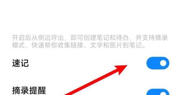 在筆記應用的設置界面中,你需要找到并點擊【速記】選項。這個選項通常用于控制速記功能的開關。進入速記設置界面后,你會看到一個速記按鈕。將這個按鈕打開,即可啟用小米MIX4的速記功能。使用速記功能: