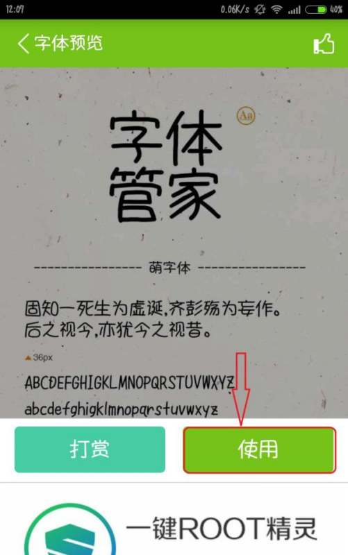 選擇并應用目標字體在字體管家中搜索或瀏覽所需字體(如示例中的“夢字體”),進入字體詳情界面后點擊“使用”按鈕。此時應用會啟動免ROOT替換流程,通過動畫效果引導用戶返回系統字體設置界面。