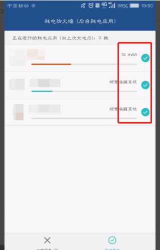 4、點擊進去了之后,可以看到目前正在后臺耗電的所有應用。包括直接按“功能鍵”時所看不到的一些正在后臺運行的應用。