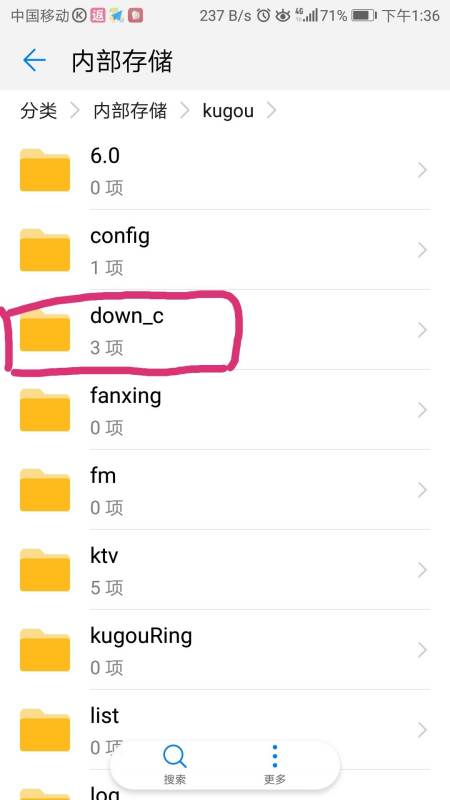3、進入到kugou文件夾頁面以后,點擊【down_c】文件夾。