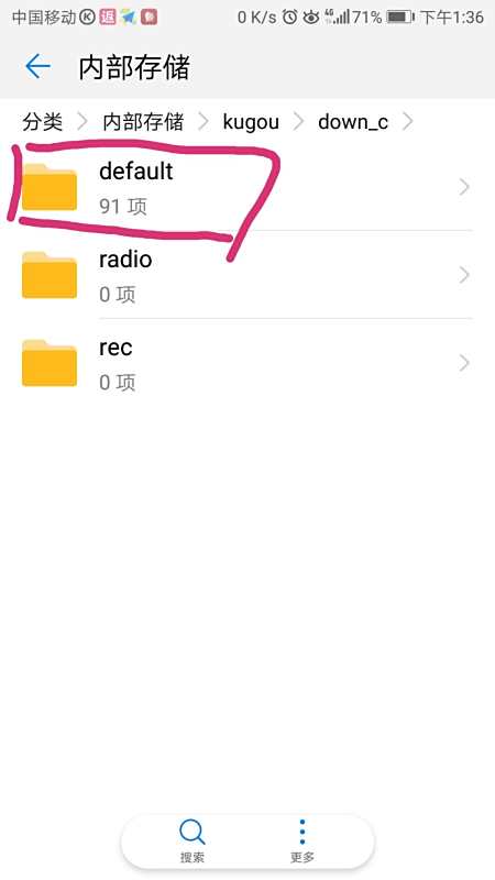 4、default文件夾里面存儲的就是手機酷狗音樂緩存的文件。