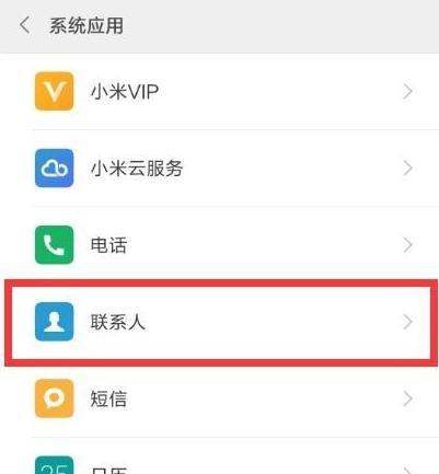 選擇聯系人管理在系統應用列表中滑動查找【聯系人】應用,點擊進入聯系人設置界面。