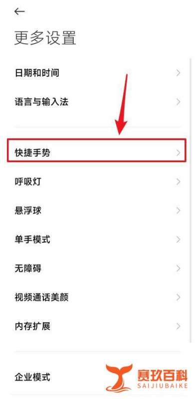 選擇快捷手勢選項:在“更多設置”界面里,繼續查找并點擊“快捷手勢”選項。