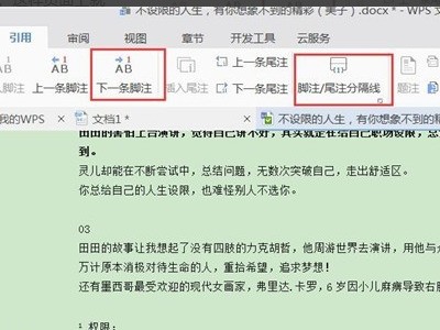 4、點(diǎn)擊引用后,點(diǎn)擊“插入腳注”。
