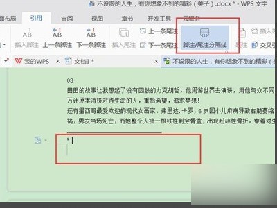 6、如果添加腳注的上方不需要橫線,就點(diǎn)擊“腳注/尾注分橫線”,這樣分橫線就會(huì)取消掉了。