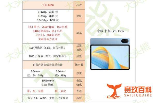 榮耀平板V8 Pro整體配置不錯,首發(fā)價2499元,在同價位段具備一定競爭力,是否值得購買需結(jié)合需求判斷。以下為詳細(xì)配置圖解及分析: