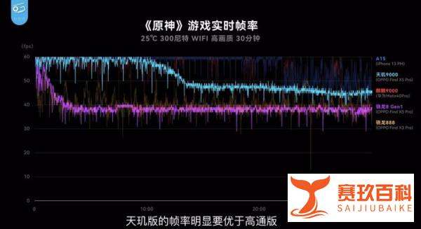 《光明山脈》測試:天璣9000初期幀率接近50幀(接近A15水平),5分鐘后降頻至30幀以下,功耗降至5.2W,此時GPU性能與驍龍865持平,但功耗更低。