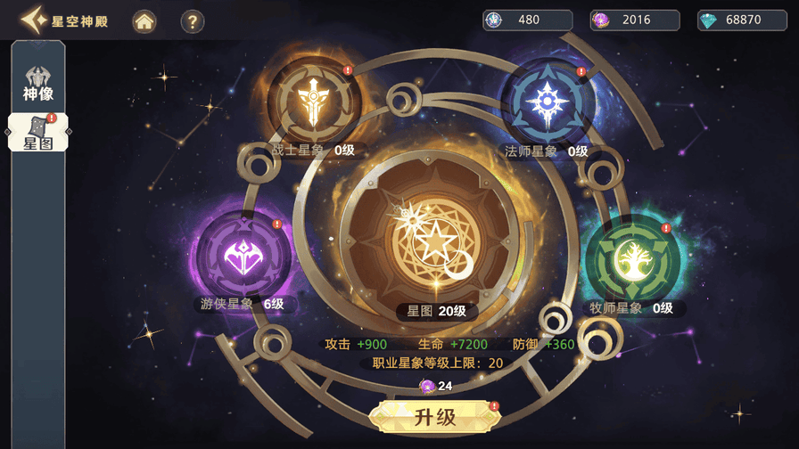 玩家首次獲得初始稀有英雄,或將初始稀有英雄首次升階至更高品階時可獲得星辰,星辰可提升星圖等級。星圖等級可以給全隊英雄提供額外的攻擊力、生命值和防御力加成。