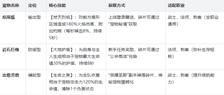 寵物按定位分為輸出型、防御型、輔助型,養成需優先保證核心寵物星級與技能,再搭配羈絆組合提升整體戰力。