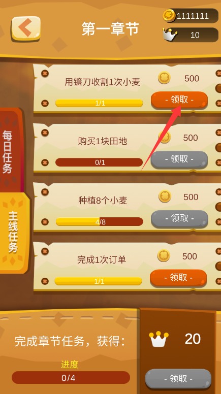 4、完成系統發布的各項任務目標后,點擊領取按鈕獲取金幣與經驗等獎勵。