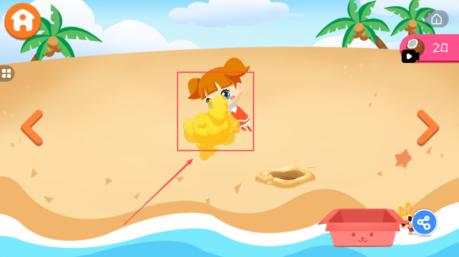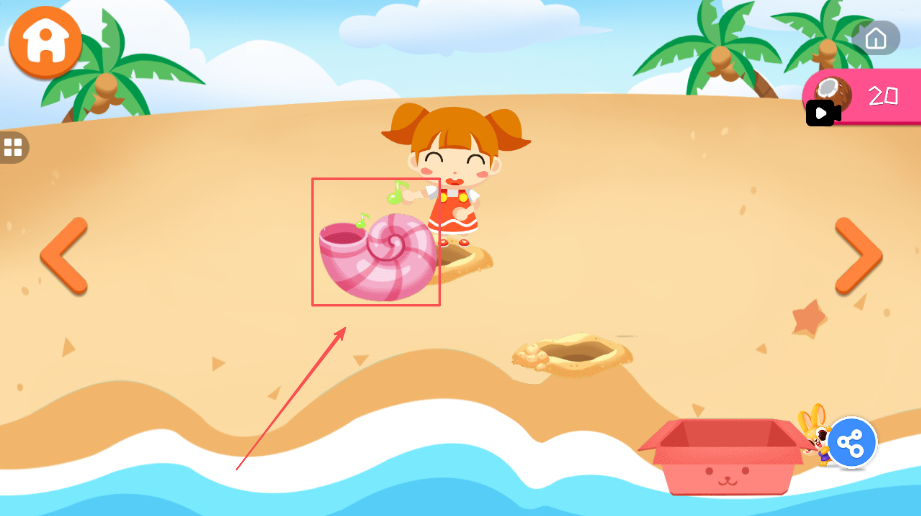 1、自由探索沙灘別墅環(huán)境,與各個(gè)場(chǎng)景中的元素進(jìn)行互動(dòng)發(fā)現(xiàn)樂趣,培養(yǎng)主動(dòng)探索精神,提升觀察力。