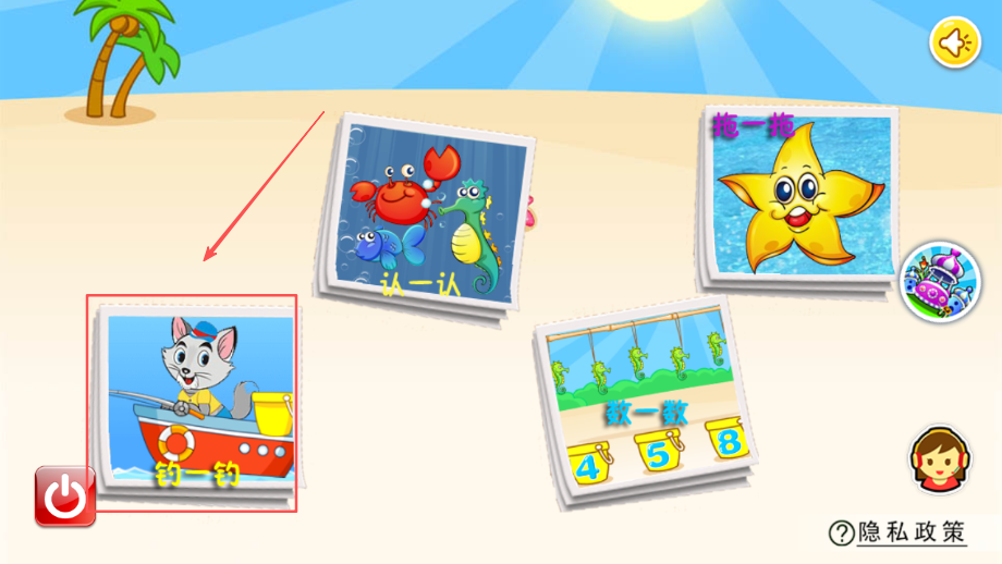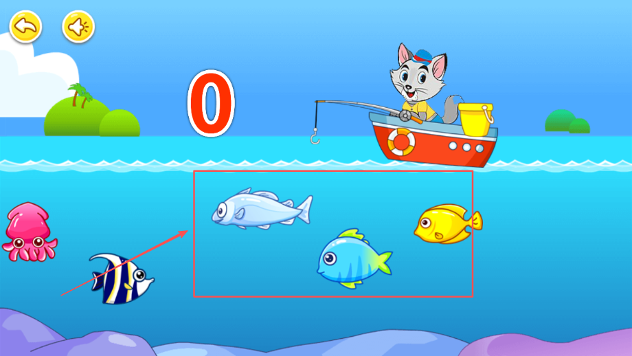 1、通過觸屏操作進行釣魚,捕獲標有數字的海洋生物,鍛煉手眼協調能力,提升精細動作技能,培養專注力。