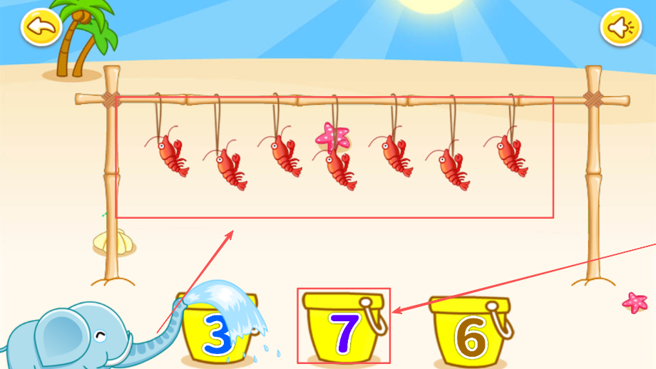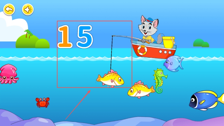 1、選擇釣魚場景開始游戲,了解不同海洋生物的特征和數字標識,通過生動畫面認識海底世界,熟悉游戲基本操作流程,建立初步認知。