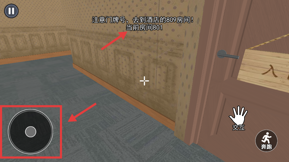 2、左側搖桿控制移動,目標前往809房間,留意當前門牌號。