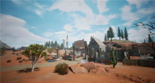 通過傳輸大炮,玩家會被傳送到一切未知的廢土世界中,這個世界分布著城鎮、荒漠、海灘以及有限的資源。